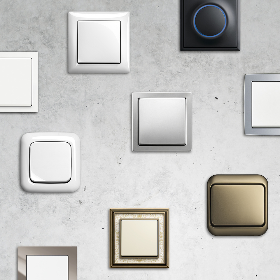 Moderne Lichtschalter sind weit mehr als Gebrauchsgegenstände. Sie sind faszinierende Designobjekte. Und verleihen Lebensräumen durch die Kombination von innovativer Technik und ästhetischem Niveau Persönlichkeit. Die Schalterprogramme von Busch-Jaeger sind auf allen Untergründen ein optisches Highlight und erfüllen höchste Ansprüche an Qualität und Optik individueller Raumgestaltung.